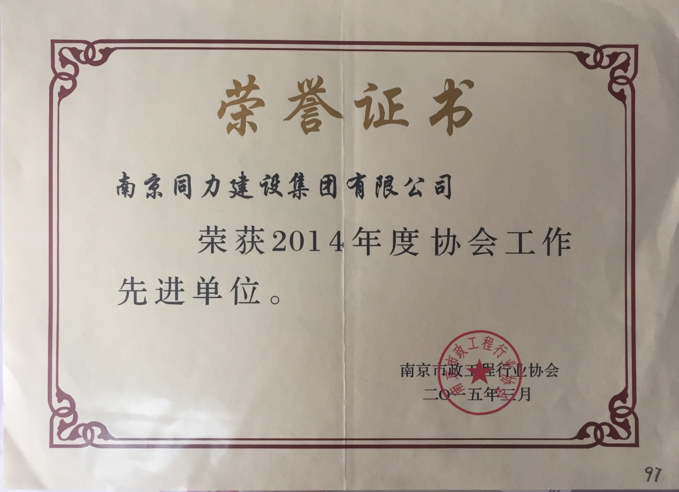 公司荣获2014年度协会工作先进单位