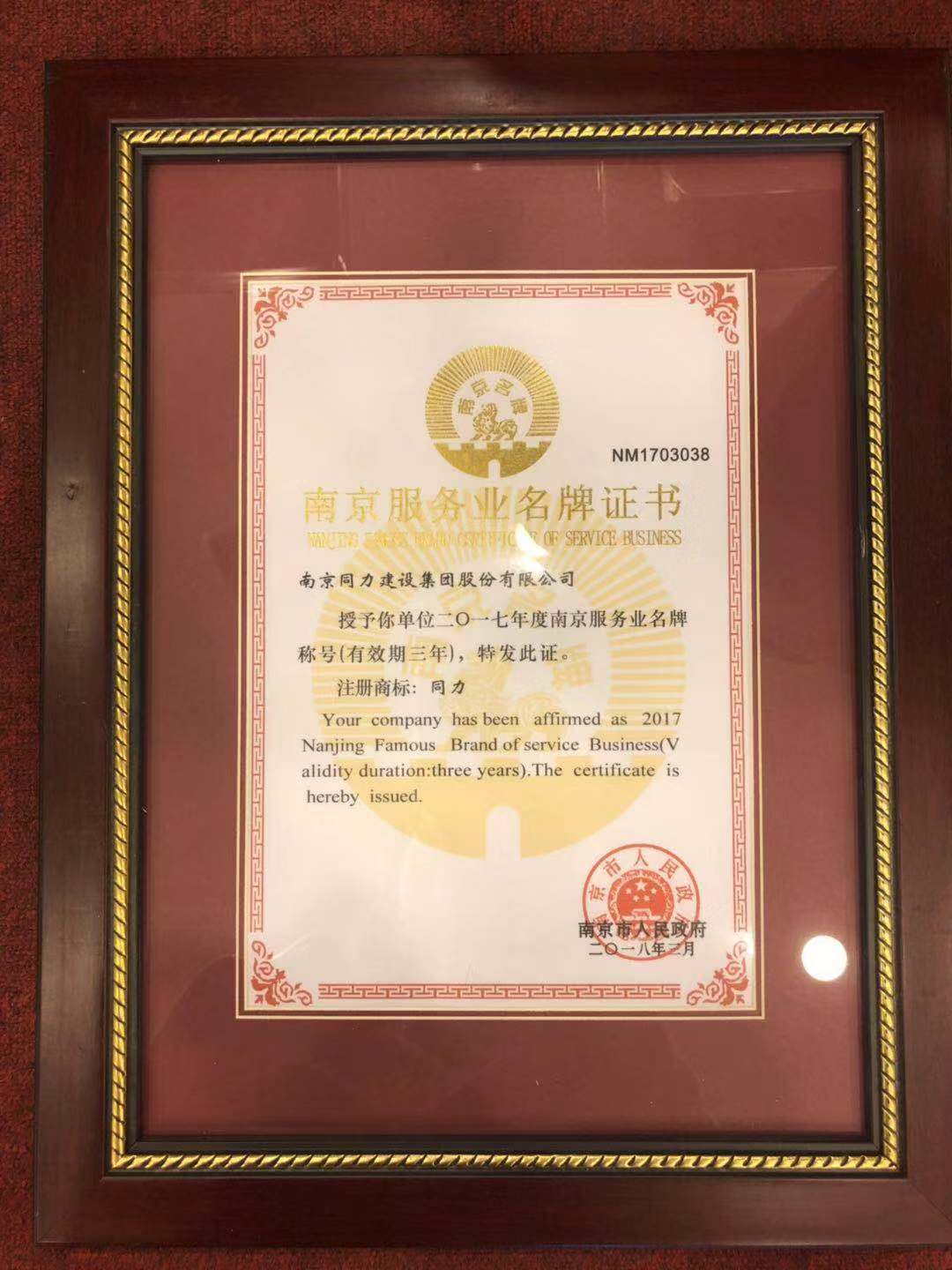 近日,同力建设被南京市名牌战略推进委员会授予 “南京服务业名牌”证书,同力建设再添一张新名片。