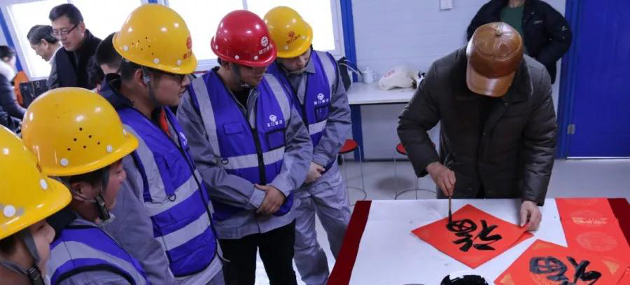 在与项目管理人员以及民工代表深入交流后,民盟市委领导向在场的工作人员送上新春的祝福,接着来自南京民盟书画院的书法家们现场书写春联以及福字,屋里屋外洋溢着喜悦的气息,慰问活动在南京民盟歌舞团艺术家的歌声中走向高潮。