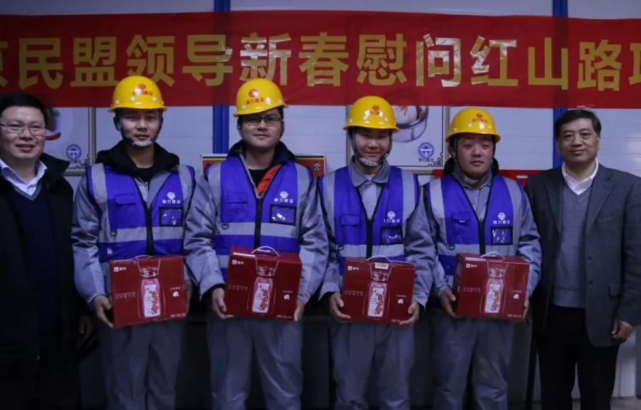 1月14日下午,王汝成副主席一行顶着寒风先后前往红山路-和燕路快速化改造SG1标施工现场以及项目部,看望慰问奋战中的一线职工,为他们送上节日礼品,同时南京民盟书画院的书法家们也当场为大家书写福字与春联,送上第一缕新春的问候。南京民盟歌舞团的艺术家也在现场用歌声送上新春祝福。民盟市委领导详细了解了红山路项目管理与施工人员的工作生活、防寒保暖措施、安全生产等情况,感谢他们战严冬、斗寒风、保生产的奉献和付出,并叮嘱大家要加强寒冷情况下劳动保护工作,注意劳逸结合,确保身体健康和安全,让广大一线员工切身感受到了民盟市委领导的关爱。