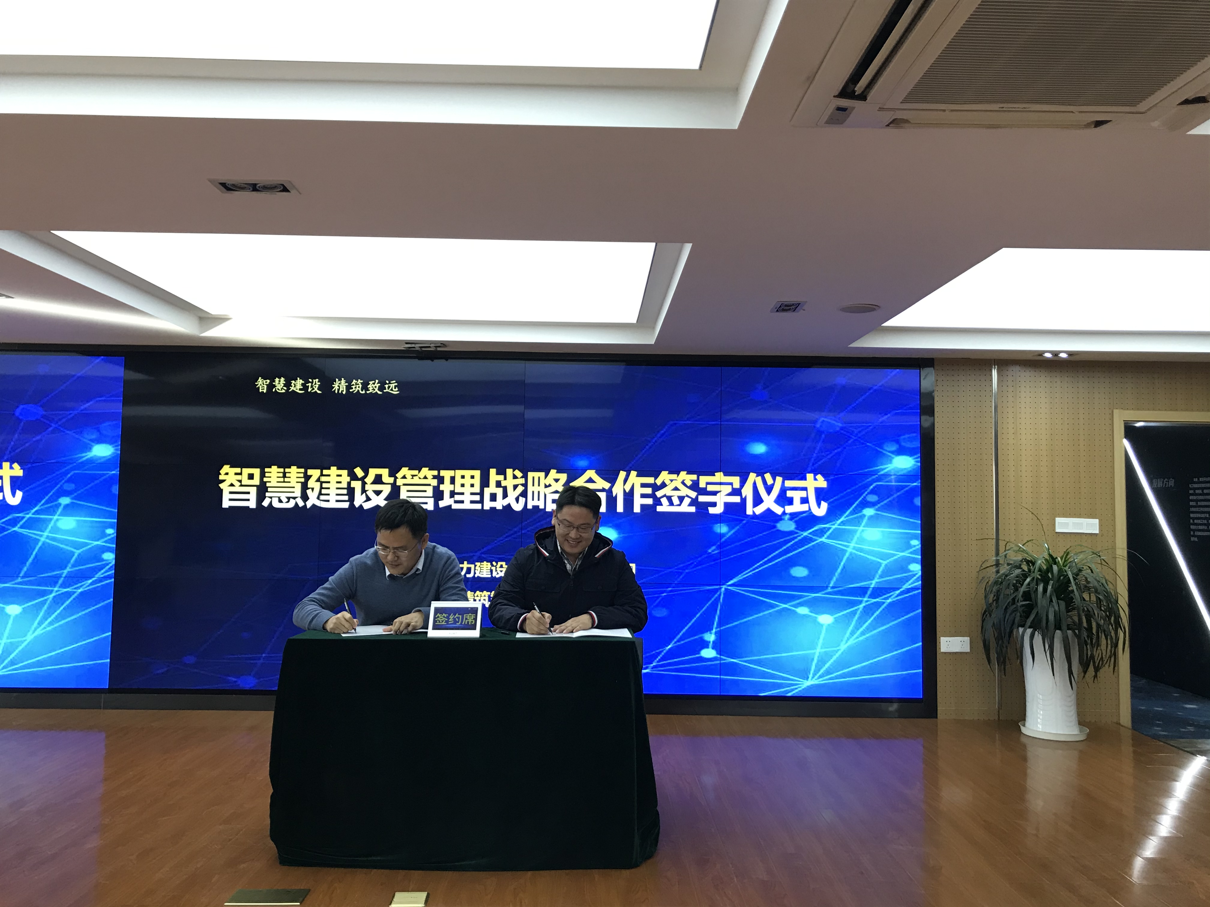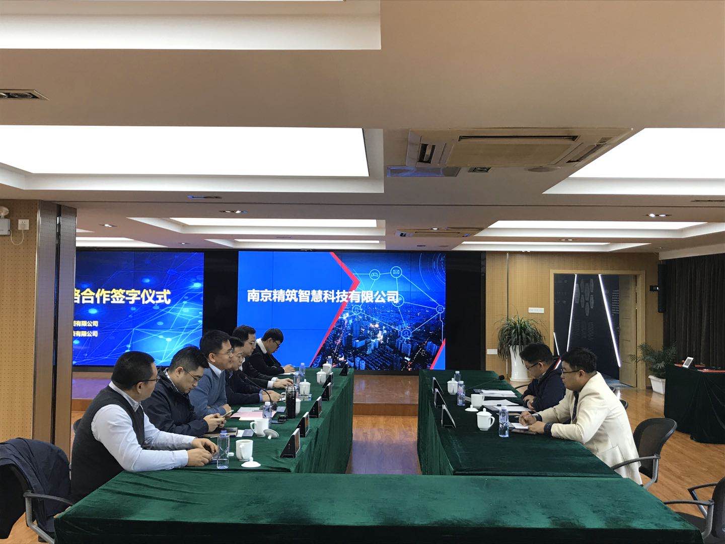114下午建管集团、精筑公司同力建设在南京市智慧工地监管平台运管中心举行会谈。南京精筑公司董事长陈铭与同力建设董事长方伟代表双方签署战略合作协议。