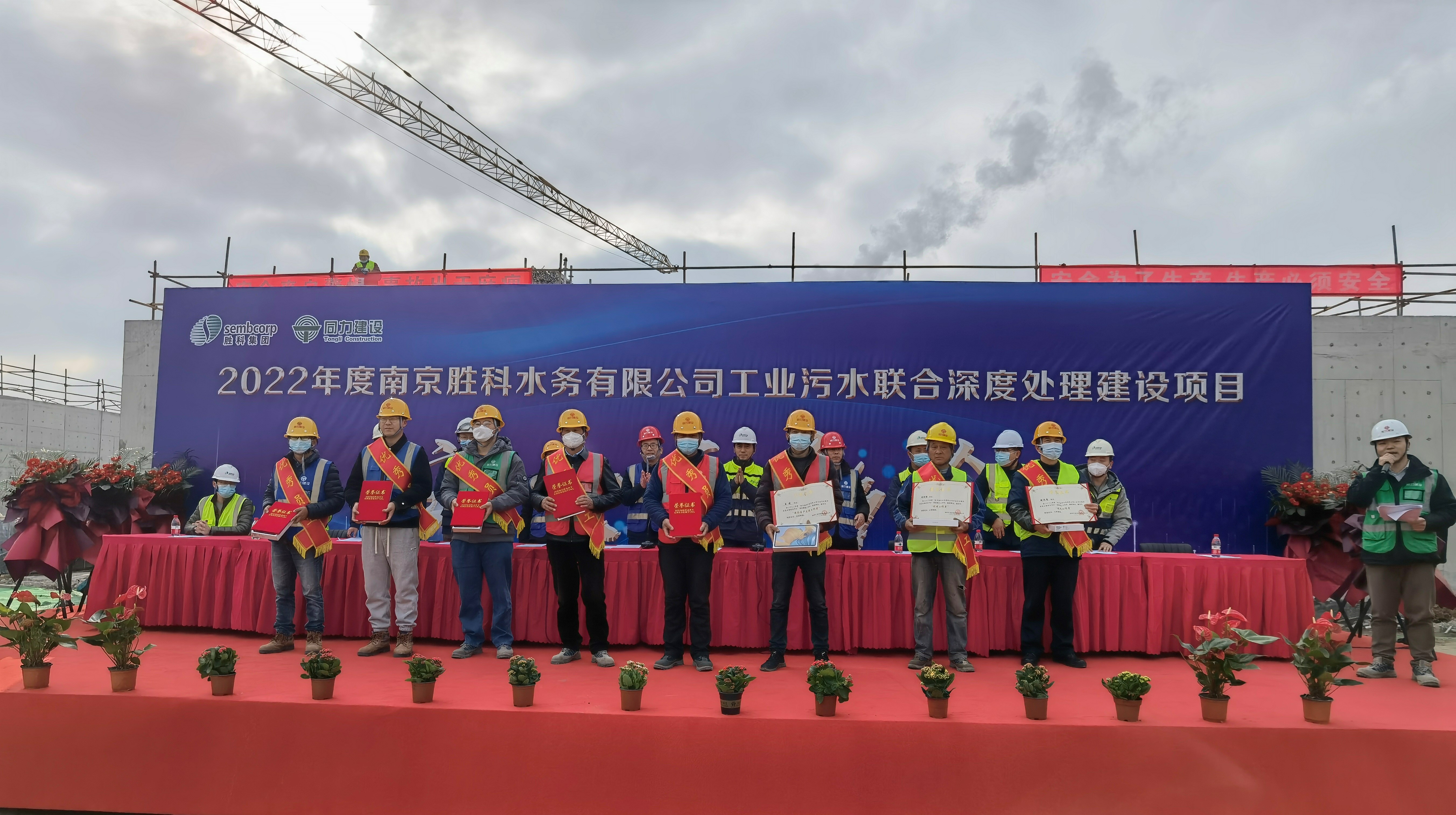 1月10日,同力建设承接的《南京胜科水务有限公司工业污水联合深度处理建设项目》在办公楼封顶之际,回顾2022年度项目建设,隐患得到及时的整改,未出现安全事故,安全管理良好,得到了各方单位的一致肯定,在南京胜科水务有限公司的大力支持之下,由项目部牵头开展了《2022年度安全表彰大会》。