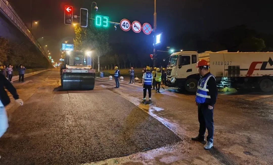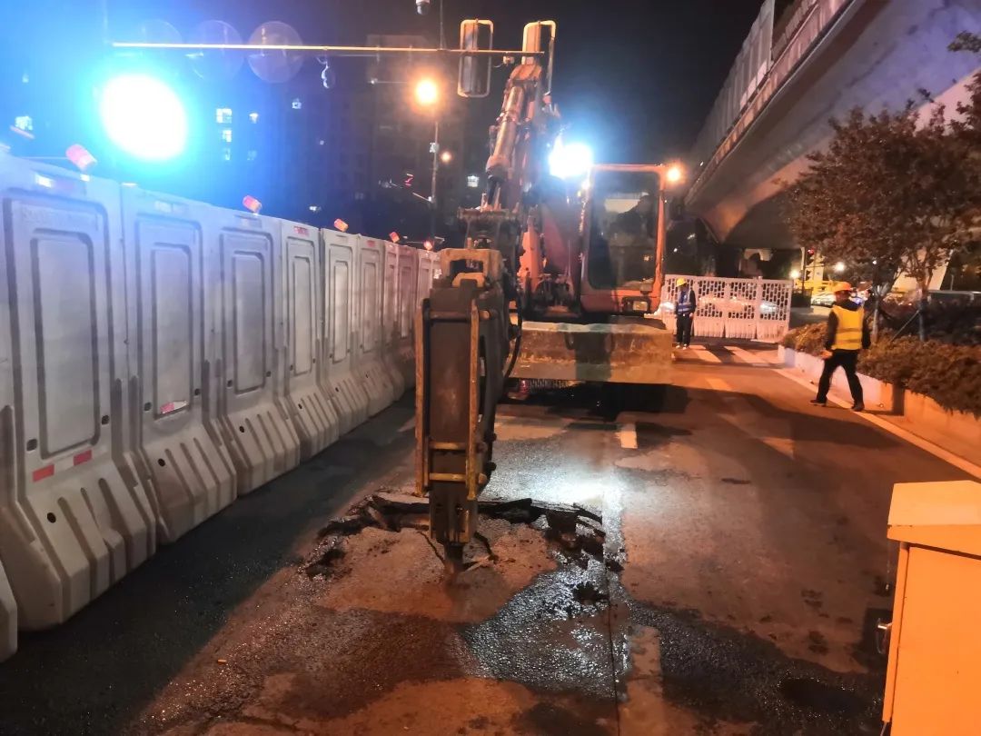 4月28日下午,同力建设组织抢险救援队伍抵达老排水管道破损现场,立即对现场进行了临时回填,并于29日凌晨1点完成路面沥青摊铺,恢复道路通行。