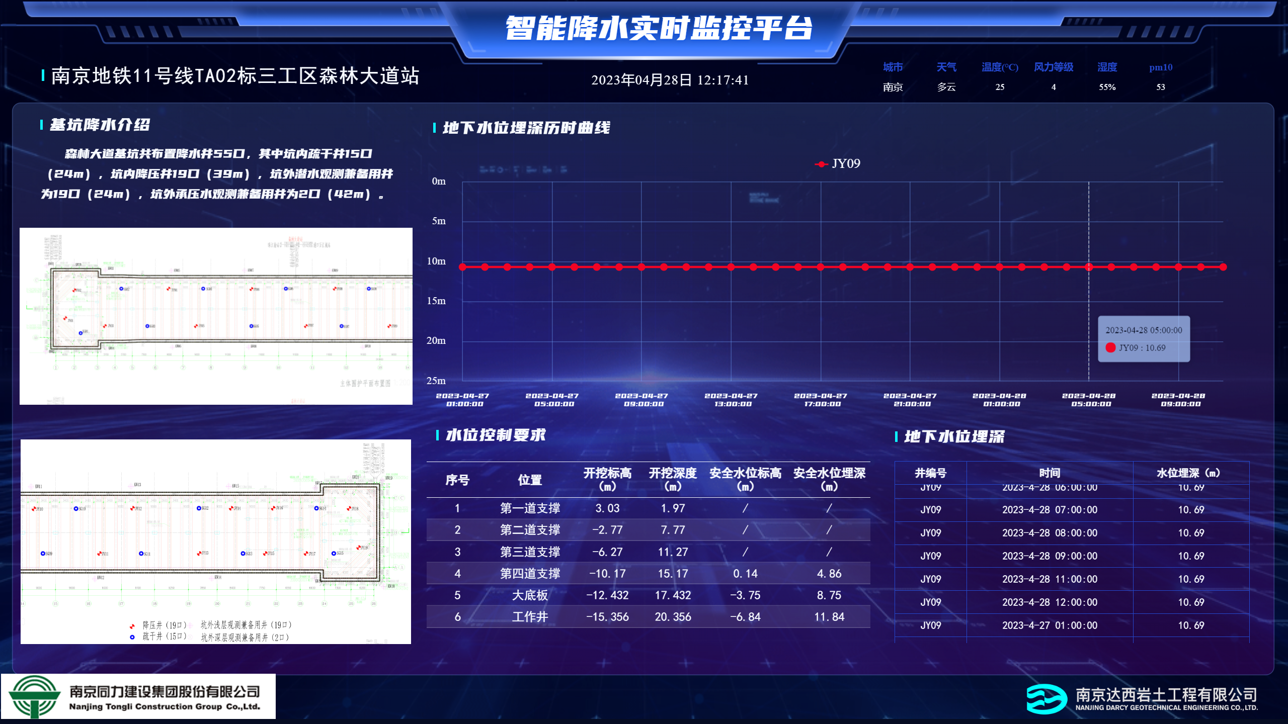 森林大道站位于浦滨路与康盛路交叉口,车站主体基坑总长212m,标准段宽20.1m,共分成九段施工。全站属于长江漫滩地貌,多为富水砂层,地下水位高,土体结构自稳性较差。作为同力建设重点工程,南京地铁11号线森林大道站项目部,面对时间紧、任务重等多重考验,项目部全体人员坚持立足实际,按照工作“一盘棋”的思路,下好“先手棋”,走好“每招棋”,项目部上下“总动员”,内外“一条心”把现场施工安全、质量、进度工作作为重中之重,同频共振形成合力,多措并举推进现场施工进度。