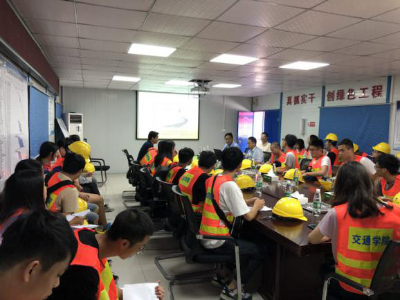 9月7日上午,南京工业大学交通学院一行80余学生在校方老师的带领下,来到了工程一分公司施工的红山路隧道项目经理部进行参观学习。在项目部门口,经过简要介绍后,一行人分为两组,一组在项目经理丁健的带领下参观施工现场,另一组由公司市场部经理徐隽组织在项目部会议室听取红山路项目施工工艺介绍及大校场隧道技术工艺总结,之后两组人员轮换,让每个学生都可以从理论到现场对整个隧道施工有一定的了解。